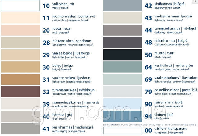 Вибір кольору, розкладка квітів затирка для швів Kiilto Saumalaasti