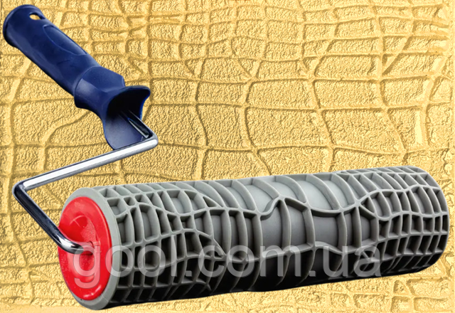 Гумовий валик структурний з пластиковою ручкою на металевому тримачі створює структуру шкіра крокодила. Підходить для штукатурки, шпаклівки та фарби.