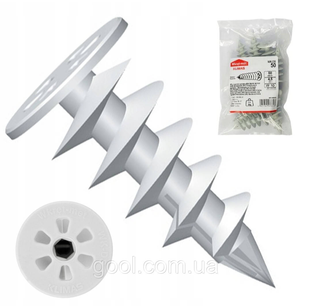 Дюбель спіральний який вкручується 50 мм для пінопласту та мінеральної вати Wkret-met в упаковці 10 штук